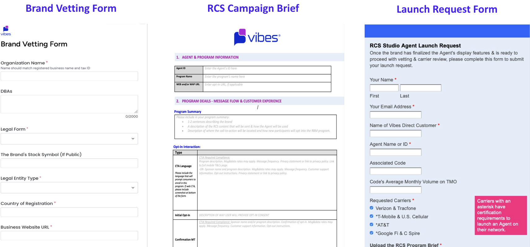 Launch a New RCS Studio Agent with Vibes - This document outlines the steps needed to launch an agent with Vibes on one or more carriers.